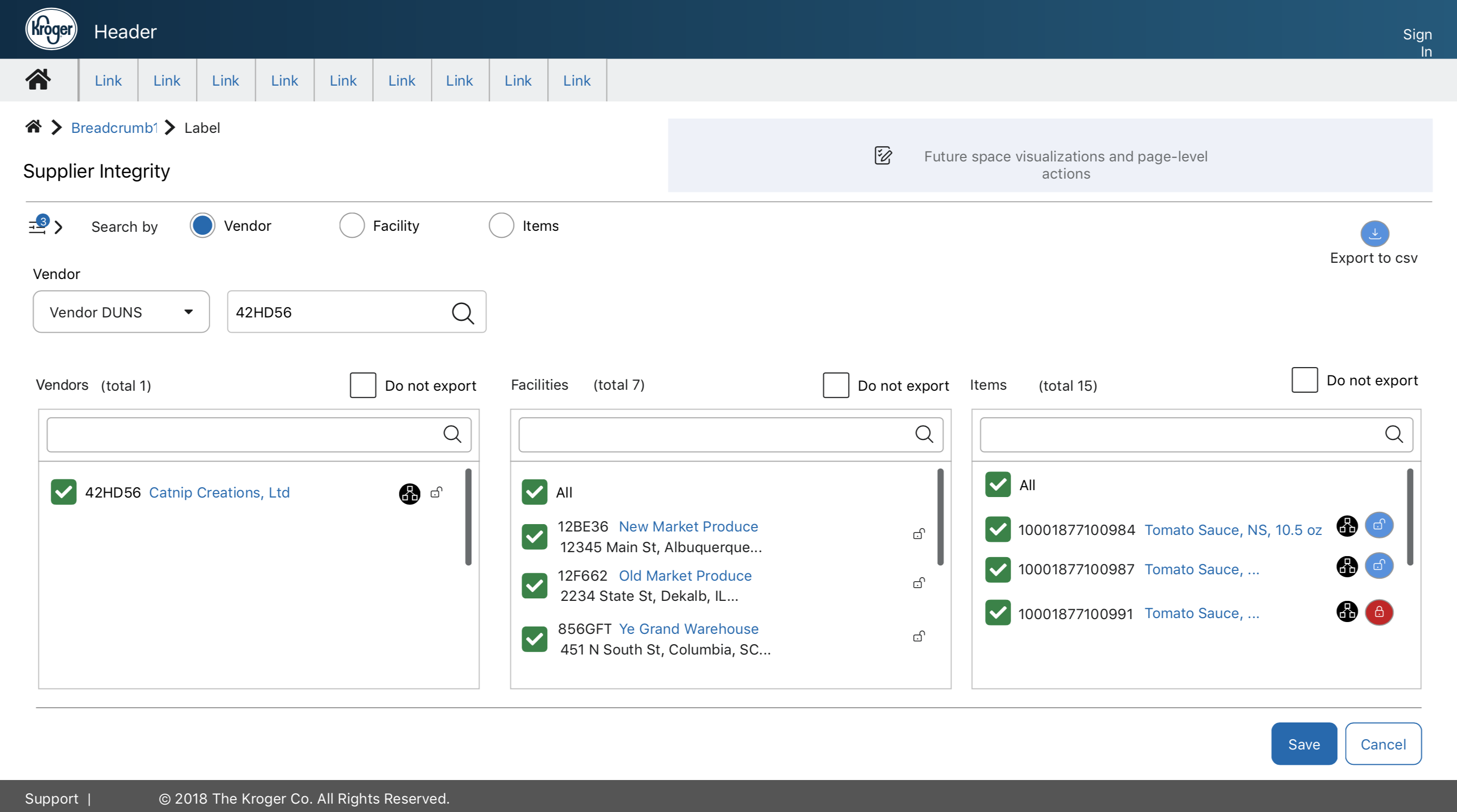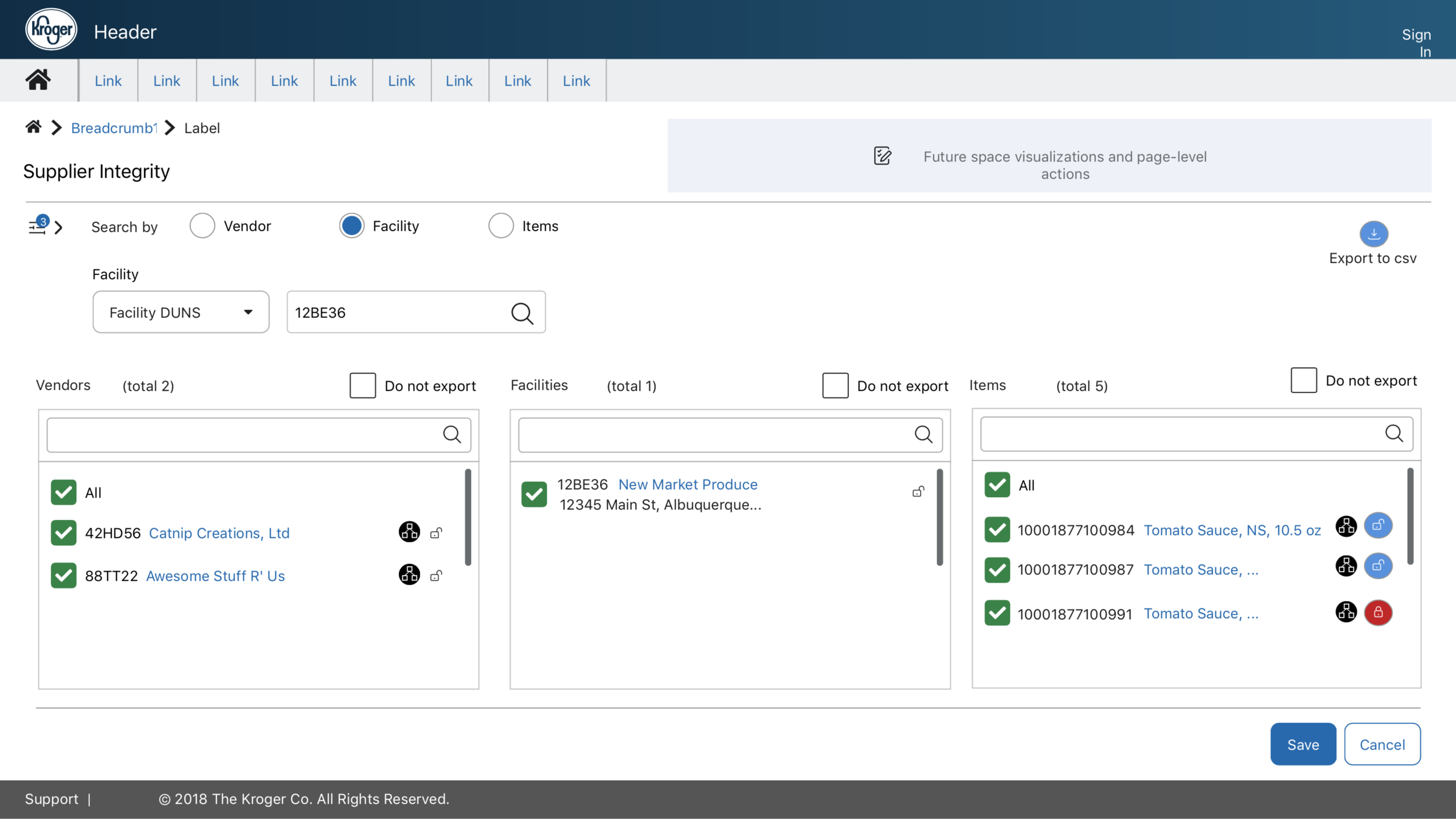Result: I handed off the wireframes and design concepts to a visual designer and he took the project to completion. The new application screens were a success for the supplier compliance team. The design allowed for time-savings in finding non-compliant items and the layout was seen as an innovative approach to conquer a complicated problem.