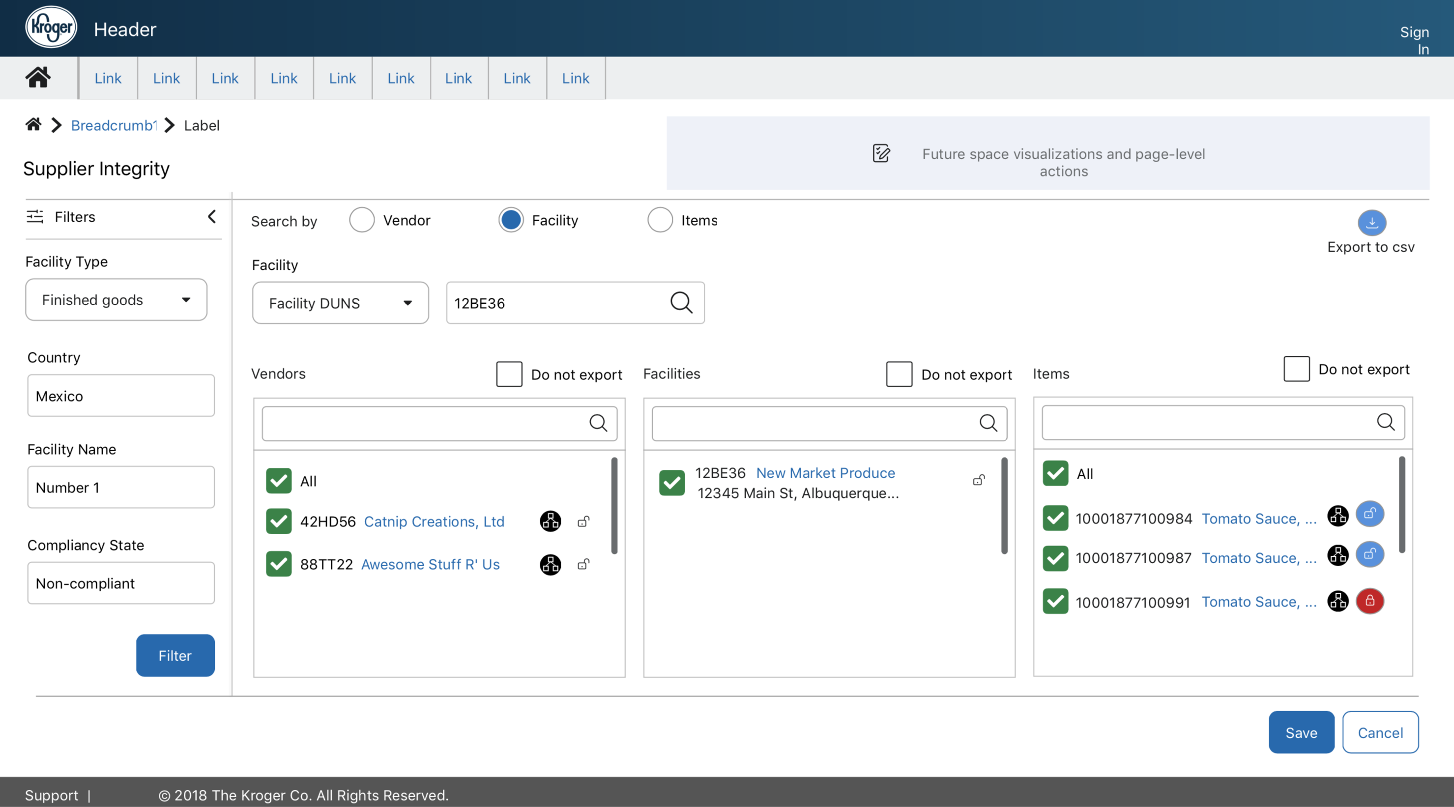 Problem: The development responsible for supplier compliance wanted to build an interface to allow blocking of products from facilities that failed compliance checks or were discovered to be part of a recall. They currently operated with the use of three spreadsheets. The original request was to make the spreadsheets available on a web page and to build in links that would display relationships between the data from one spreadsheet to another.